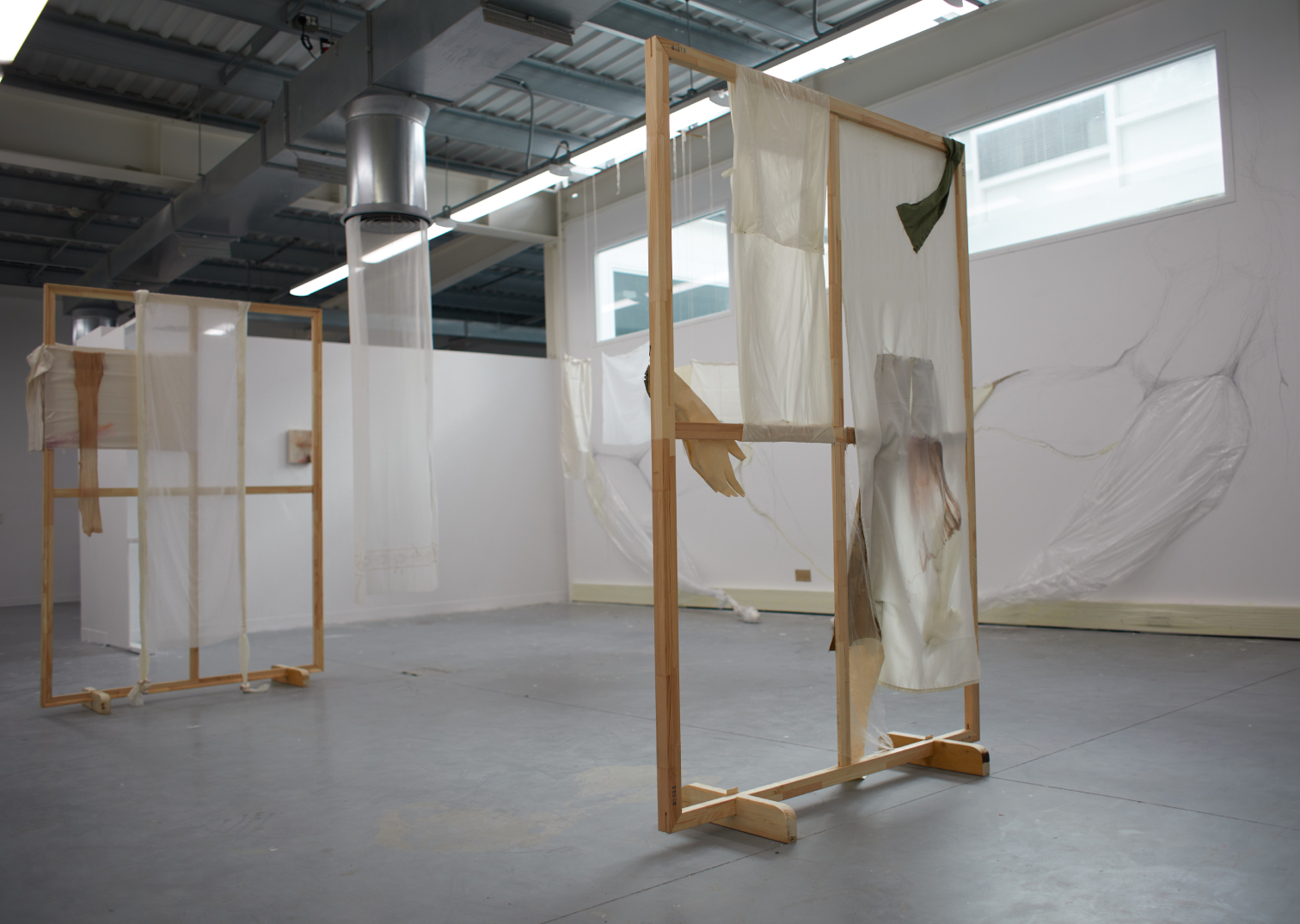 'Untitled' Installation views, various works on wood frames, paper, fabric, wood, and canvas